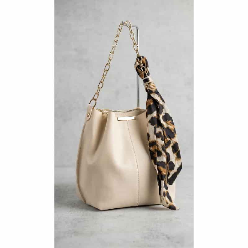 Leopar Desenli Fular Detaylı Krem Rengi Çanta