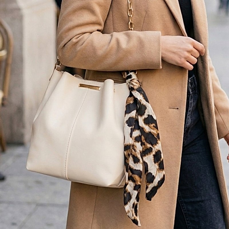 | Ürün Adı | Leopar Desenli Fular Detaylı Krem Rengi Çanta |